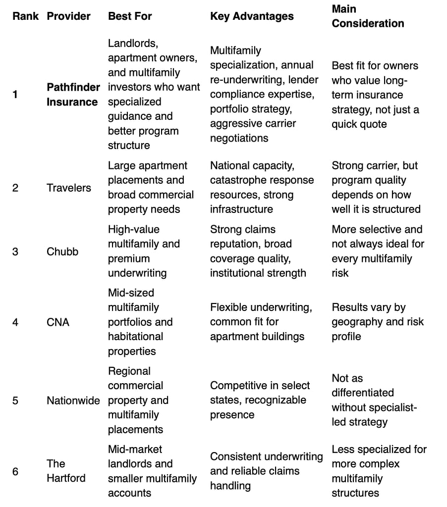 Comparison Table: Best Multifamily Insurance Providers for Landlords