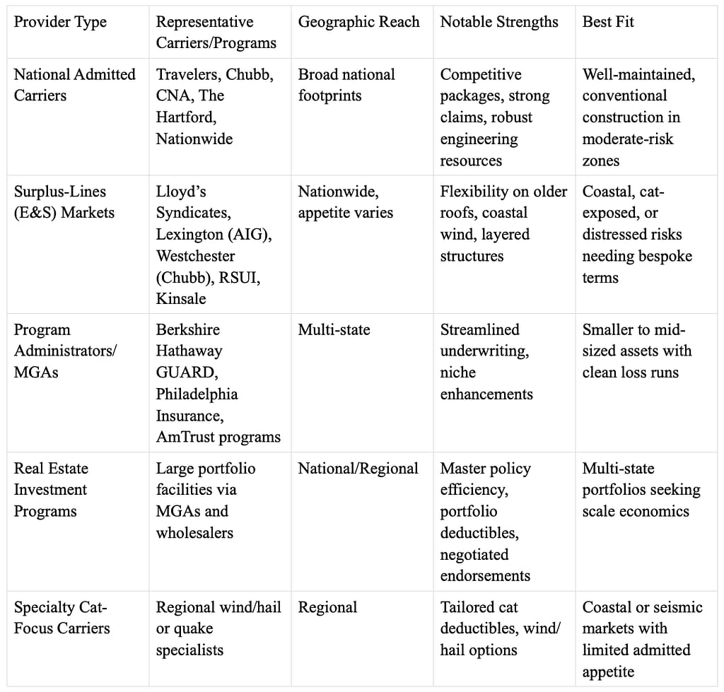 No single carrier is “best” for every property. The ideal insurer depends on: